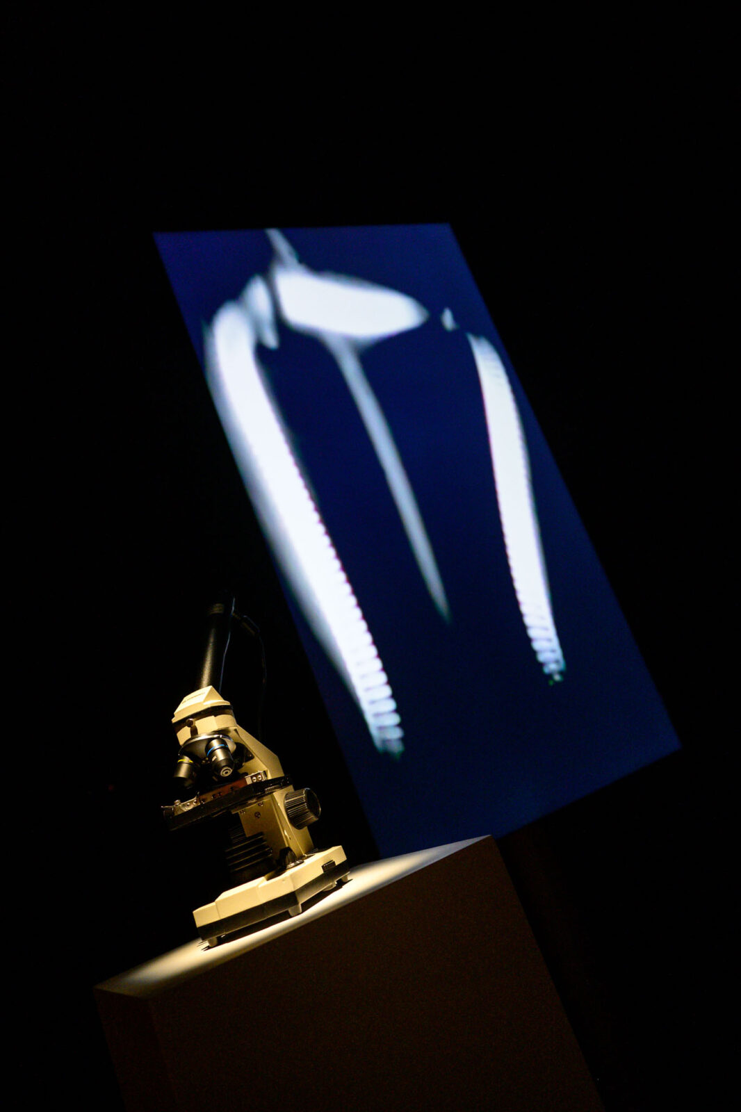 Teos koostuu mikroskoopista, jonka linssistön alla pienoishehkulampun hehkulanka värisee ja säksättää, kuin hengittäen tai koristen ja kärsien. Mikroskoopissa oleva kamera tarkkailee tilannetta, ja hieman röntgenmäinen suurennoskuva välitetään suorana videosyötteenä näyttömonitoriin tai videoprojisoinniksi.