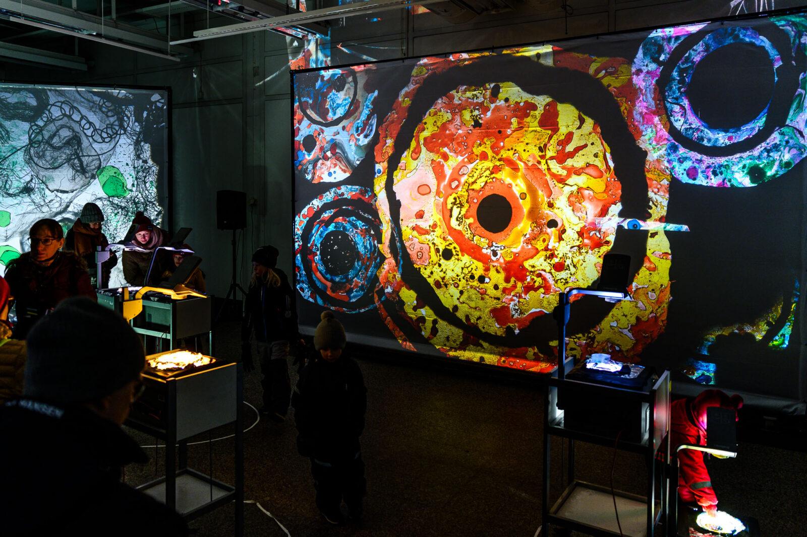 Analogue Projections is a series curated by the Sun Effects collective, that features various artists creating temporary projection works in unexpected places. At the Kerava 100 Special event, the latest part of the series will be showcased as the only piece executed indoors. Visual designer Julia Jäntti along with visual artists Ilari Vanhatalo and Petra Martinez utilize vintage overhead projectors, previously used in education, as a medium for expression, creating a unique visual surface in the basement of the old Anttila department store.