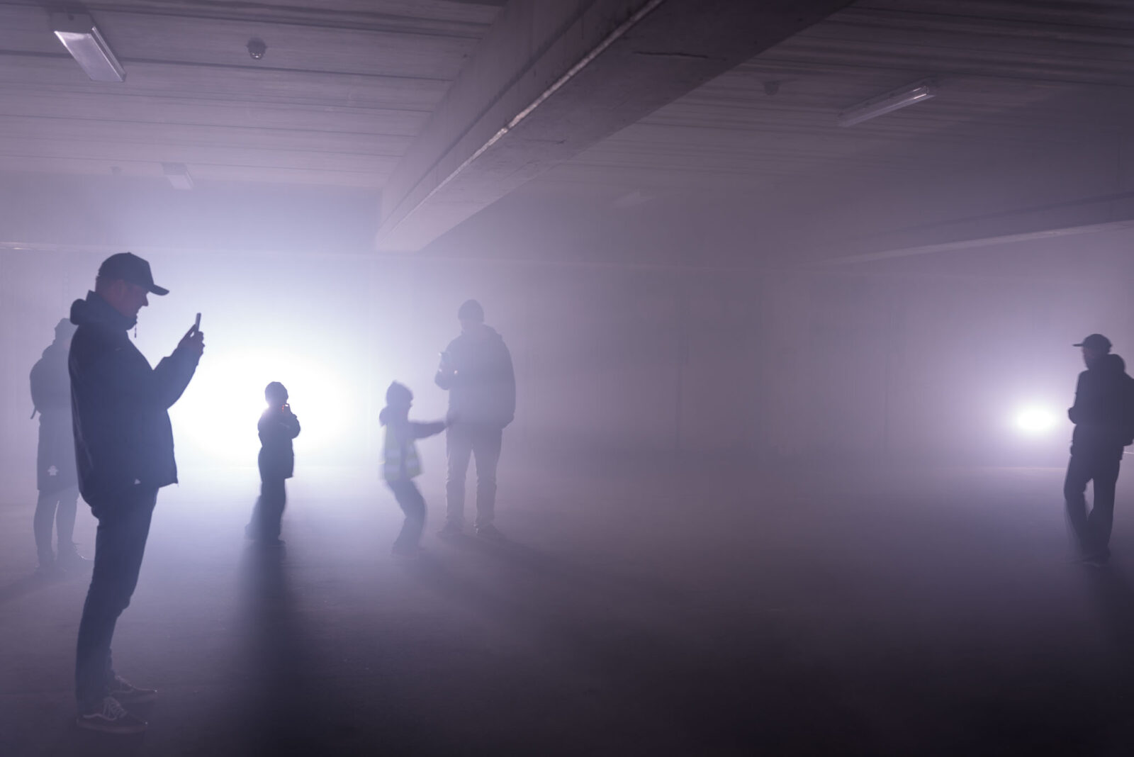 Parking Rituals is a site-specific installation carried out in a deserted parking garage at Espoon Keskus. It is fueled by rhythmic lighting sequences and monotonic soundscape mantras echoing in an empty and hazy urban space. The installation guides a fully committed viewer through a purifying trance with the use of different technological medium. Psychologically, the process of trance is often construed as a state of mind caused by cognitive loops. Repeating an intentional action long enough results in various sets of disabled cognitive functions temporarily, making room for suggestion. This is the psychological mechanism Parking Rituals utilizes to launch a spirit quest. Between the parking lot striping lies the question: what kind of mysticism and transcendental spiritualism fits into the built environment? Is it possible to initiate a trance-like state through automation?
