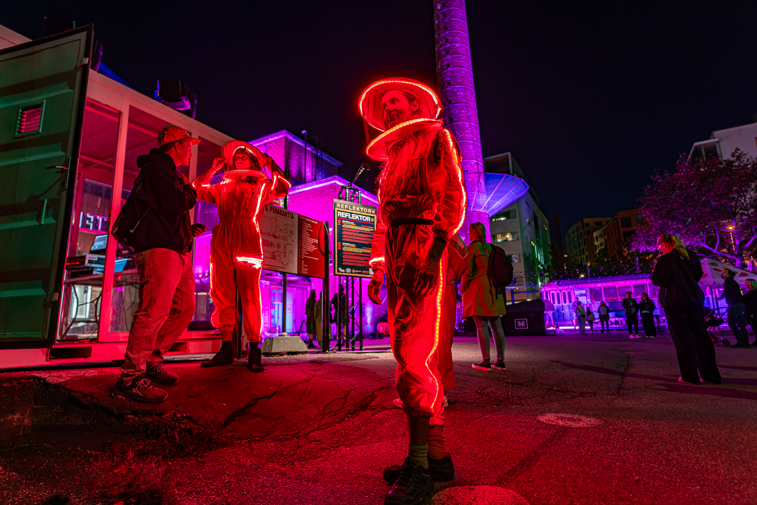 Founded in 2023, Reflektor ry exists to stage the Reflektor audiovisual arts festival. Our mission is to grow audiences for audiovisual art by bringing works to the places where people already are—suburbs, nature trails, residential districts. Since 2018, the Reflektor festival has illuminated Helsinki, Espoo, Vantaa, Kerava, and Sotkamo.